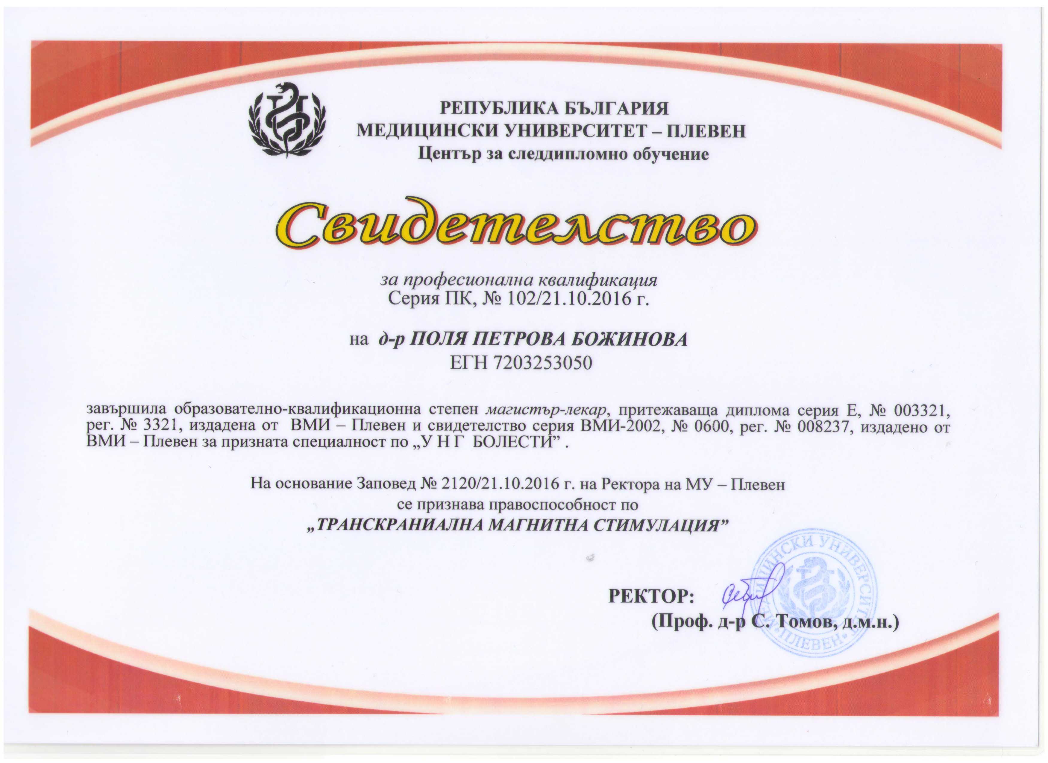 Център за лечение чрез транскраниална магнитна стимулация (ТМС)